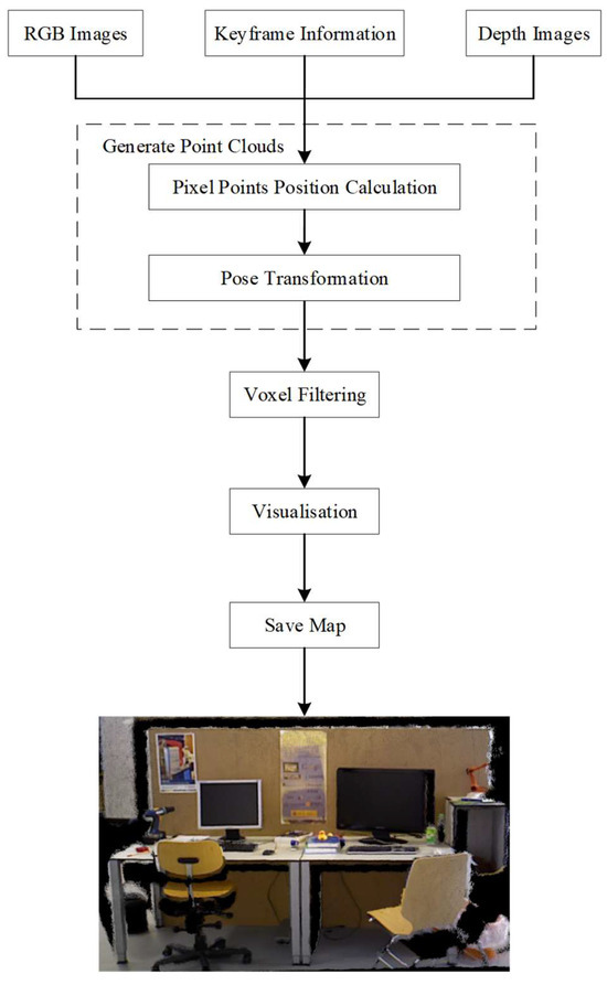 In recent years, significant progress has been made in mobile robot localisation, mapping, and autonomous navigation technologies [1]. In particular, simultaneous localisation and mapping (SLAM) [2,3], which uses data from on-board sensors to achieve localisation and mapping of environments without prior information, has become indispensable fundamental technology for mobile robots. SLAM can be divided into laser and visual SLAM according to the sensor type [4,5,6]. Laser SLAM is currently the most stable and mainstream method for localisation and navigation. However, it is limited by poor recognition of certain object categories and high costs. Compared to laser SLAM, visual SLAM is more flexible and provides rich semantic information, which makes it suitable for complex and diverse environments. Therefore, visual SLAM is gradually gaining popularity, and it has become a research hotspot.