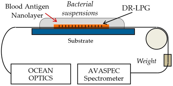 - Dyankov, G.; Eftimov, T.; Malinovski, N.; Belina, E.; Kisov, H.; Mikulic, P.; Bock, W. Highly Efficient Biosensor based on MAPLE Deposited Hemoglobin on LPGs around Phase Matching Turning Point. Opt. Laser Technol. 2019, 123, 105907. [Google Scholar] [CrossRef]