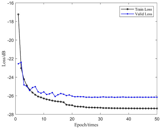 Figure 10 plots the training loss and valid loss of the trained network with different epochs. It can be observed that the validation set’s loss function began to stabilize around the 40th epoch. To prevent overfitting, the model trained with 40 epochs was selected for echo cancellation in the ultrasonic through-metal communication.