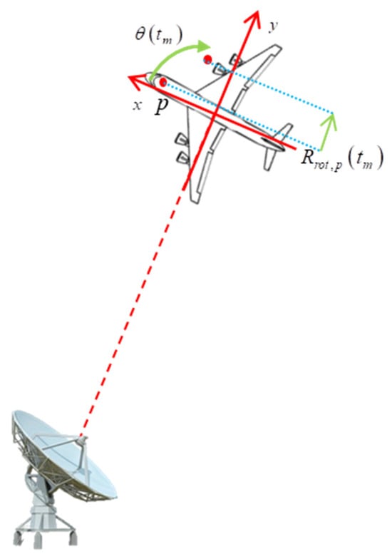 where and are the Y–X coordinates of scattering center p and is the rotational angle. Currently, most scholars believe that maneuvering targets undergo uniform acceleration rotation during ISAR imaging. Thus, can be written as