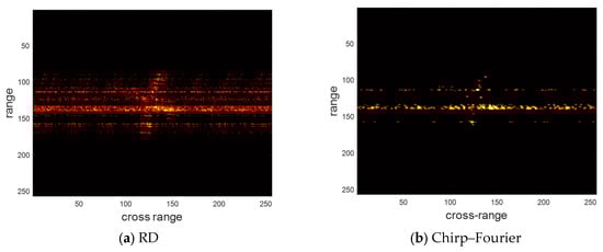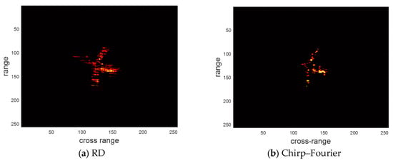 The biggest challenge to inverse synthetic aperture radar (ISAR) imaging is the non-cooperative nature of the targets. Due to the time accumulation required for ISAR imaging, the motion of the target during ISAR imaging can greatly affect the quality of ISAR imaging. Based on the spatial relationship between the direction of motion and the direction of the radar line of sight, the motion of the target can be decomposed into translational and rotational motion. The translational motion is parallel to the radar line-of-sight direction, which does not benefit ISAR imaging and needs to be compensated for [1,2,3,4]. The rotational motion contains the azimuth information of the target, which is needed for ISAR imaging. The classical range–Doppler (RD) algorithm treats rotational motion as a uniform velocity, which holds when the target is flying smoothly. However, when the target is maneuvering, the rotational motion is non-uniform and RD algorithm will be invalid. Therefore, it is essential to conduct research on ISAR imaging of maneuvering targets.