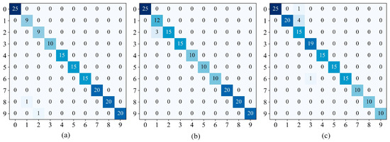 Confusion matrices. (a) Dataset1; (b) Dataset2; (c) Dataset3.