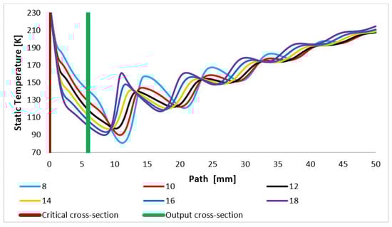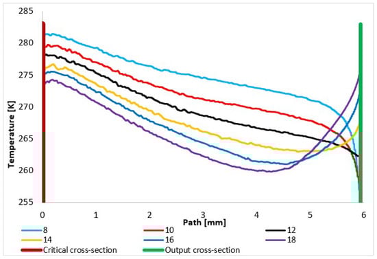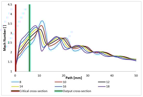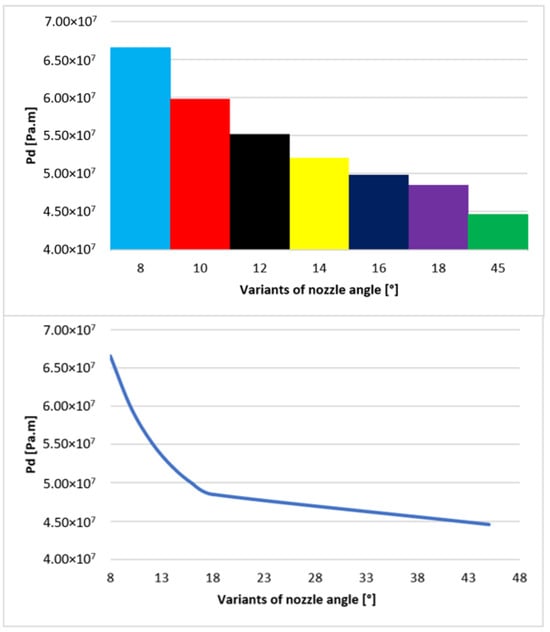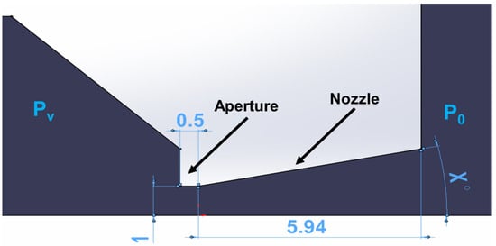 | Angle X of Nozzle Opening from Axis [°] | Radius of Output Cross-Section [mm] | |
