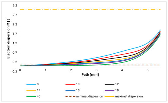 5.3. Evaluation of Electron Dispersion for Each Variant