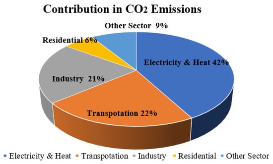 Human survival depends on maintaining a habitable environment, and fossil fuels have a finite supply. EVs are being promoted as a viable transportation option because of their efficiency and lack of environmental impact. As more people learn about the advantages of EVs, that number is projected to rise to over 100 million by 2030. As Asian nations work to increase EV uptake, decrease CO2 emission reported in Figure 1, and entice investors, the region’s EV sector stands to flourish. There will be 27,81,69,631 conventional cars and 13,34,381 EVs on Indian roads by 2022. The e-Vahan portal is managed by the Ministry of Road Transport and Highways and contains detailed information on EV sales in India and worldwide [3,4]. The social, environmental, and economic potential gains from EVs are shown in Figure 2.