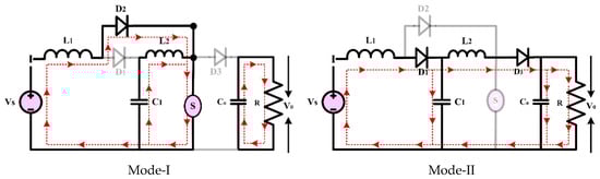 In this configuration, switch inductors are used with either a traditional QBC or a modified QBC to create a state-of-the-art high-gain converter. To increase the converters’ gain, a certain way of connecting the controlled or uncontrolled switching inductors to the QBC allows them to store and release energy throughout each cycle. In this section, two high-gain converters that utilize the switch inductors’ topology are described. In addition, two different modes of operation, Mode-I when switch S is ON and Mode-II when S is closed, are discussed.