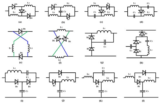 In this section, a few high-gain prior-art converters based on QBC topology are examined. It also describes other boosting topologies, such as voltage lifting, voltage doubler circuits, switch capacitors, switch inductors, and switch capacitors and inductors. These topologies are typically combined with a QBC to achieve high-voltage gain. These boosting methods can be divided into three groups: switch capacitors, switch inductors, and hybrid switch capacitors and inductors.