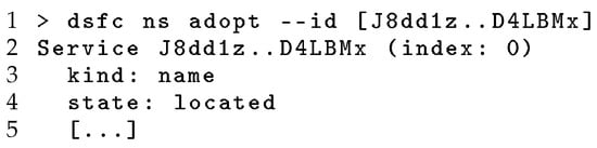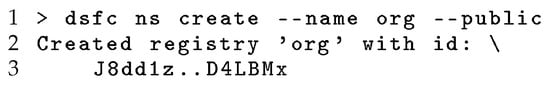 Figure 4. Note the simple creation and sharing of a DSR without the deployment or configuration of supporting infrastructure as is required for existing centralised approaches. Following the creation of the registry, the dsf-iot utility can be used to register each IoT service, generating TIDs for each endpoint kind and metadata field and then publishing the DB containing this information and storing the corresponding TPs in the DHT to construct the overlay. This registration process is demonstrated in
