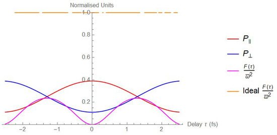 With and indicated, respectively, the coherence time of the photons’ downconverted emission (hence, is the FHWH of the function ) and the residual birefringent delay are intrinsic in the source itself. , conversely, represents the adjustable polarisation-dependent delay introduced before the beam splitter by means of the motorised translation stage (4. in Figure 1). The quantity is the peak frequency of the optical pump.