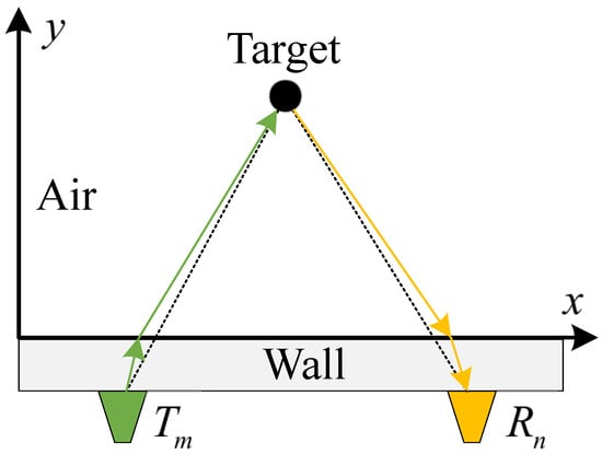 is the step size of the SFCW radar, Q is the number of radar frequency points, and T denotes the time in each frequency band. At this time, the point is set in space, and for the mth transmitting antenna , the nth receiving antenna , and the qth frequency point , the echo signal of the target body can be written as