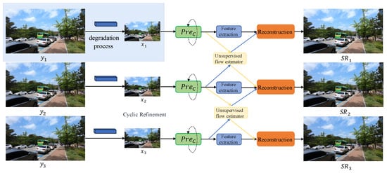 Recently, Huang et al. [17] showed that temporal redundancy brings adverse effects to the information propagation in most existing VSR methods. For example, this information also leads to exaggerated artifacts, arising from the accumulation of errors during propagation. As a result, we used an image pre-cleaning module [18,19,20] to reduce the adverse effects of noise and artifacts on propagation. Furthermore, to establish accurate connections among multiple frames, we have integrated an unsupervised optical flow estimator to make the most of its potential. Finally, to balance performance and the computational cost, we simplified the propagation network and reconstruction module of BasicVSR, further reducing model complexity.