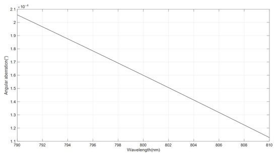 As can be seen from Figure 8, the angular aberration Δθ is within 0.0002057° under the condition of 1075 mm focal length, so chromatic aberration can be expressed as: