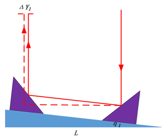 where L represents the lateral distance from the midpoint of the step reflection unit to the rightmost side of the step, and η1 is the angular deviation as in Figure 9.