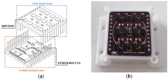IMU array system design: (a) IMU design diagram and (b) IMU physical picture.