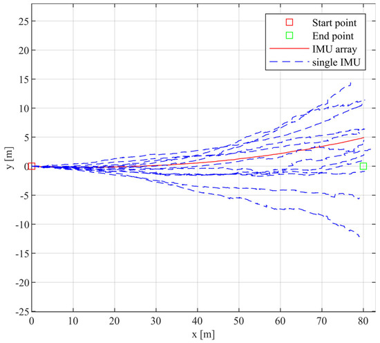 In the straight walking experiment, as the walking time increases, the navigation performance of the IMU array may be influenced by IMUs with higher measurement errors within the array. Therefore, it would be valuable in future work to investigate a method that can adaptively adjust the weights of each IMU in the measurement fusion process.
