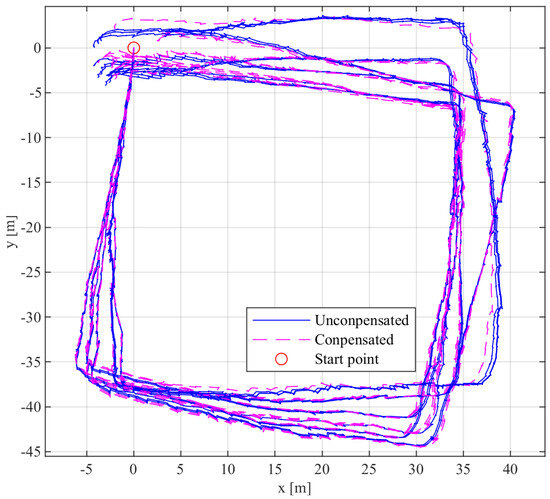 Systematic error compensation primarily falls into two main categories. First, for an estimation of system errors by Kalman filtering, Gao et al. proposed various stochastic weighting methods to estimate system errors in the observation model of dynamic vehicle navigation. They compensated for system model errors by correcting observation residual vectors and state noise vectors during the filtering process [30,31,32]. In addition, Gao et al. introduced a novel transfer alignment robust adaptive filtering method that adaptively adjusts and updates prior information through equivalent weighting matrices and adaptive factors to counteract the influence of system model errors on system state estimation, thereby improving the accuracy of state parameter estimation [33]. Second, it compensates and suppresses systematic errors through IMU calibration. In this paper, calibration is performed on IMUs to compensate for systematic errors within them.