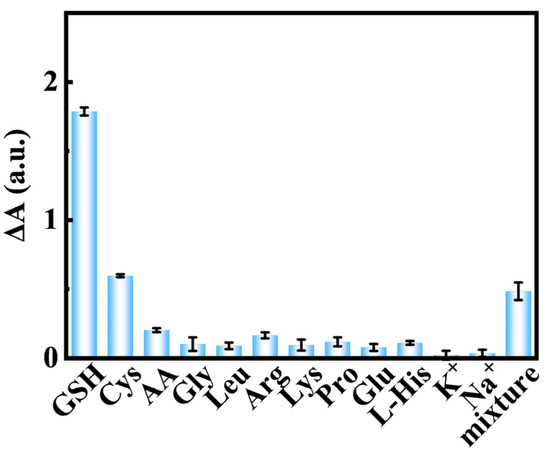 - Wang, D.; Meng, Y.T.; Zhang, Y.; Wang, Q.; Lu, W.J.; Shuang, S.M.; Dong, C. A specific discriminating GSH from Cys/Hcy fluorescence nanosensor: The carbon dots−MnO2 nanocomposites. Sens. Actuators B Chem. 2022, 367, 132135. [Google Scholar] [CrossRef]