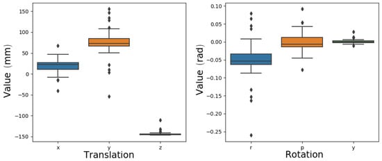 As can be seen in Figure 8b, whenever the cubes were found to cover the entire working area, the calibration improved with respect to the initial one. The configurations that made the least error were those that covered it most densely. When the cubes were close together, as in the third case, the calibration resulted in a worse performance. This result did not deviate from what was expected. When the cubes were so close together that the situation resembled that of having only one cube, the system could eliminate the supposed systematic error by adjusting to this particular situation but generating an incorrect transformation.