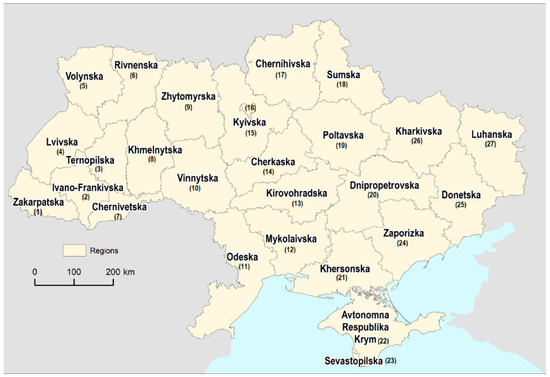 Figure 1), which include 24 oblasts (provinces), two cities with special status, and one autonomous republic. This administrative structure was introduced as part of reforms aimed at decentralizing governance and empowering local communities. Additionally, there are 136 raions, also known as ‘districts’, and 1469 hromadas, which are community-level administrative units. Before the year 2020, Ukraine was divided into 490 raions and 118 cities of regional significance, which were significant urban centers within their respective regions. The shift in administrative divisions reflects the evolving governance structure in Ukraine.