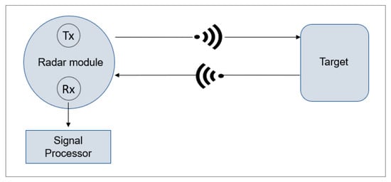 Radar (Radio Detection and Ranging) transmits and detects Radio Frequency (RF) waves. As shown in Figure 3, the technology works by transmitting short pulses from a radar module (Tx), followed by processing the signal with a receiver (Rx) once the signal has bounced off a target [].