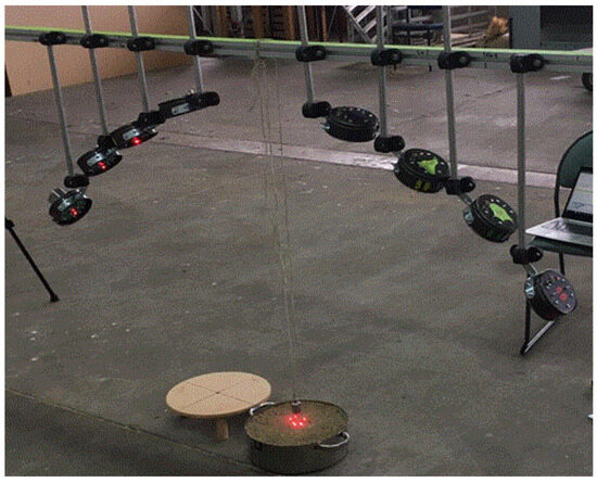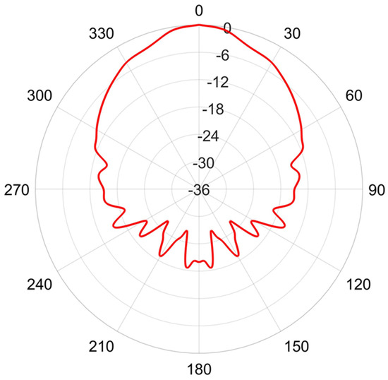 A 180° change of phase also occurs for θ > θmax. For the examples plotted in Figure 5, this occurs around 70° when α∞ = 1.35 and ϕ = 0.65 and around 60° when α∞ = 1.35 and ϕ = 0.85. The prototype design has M = 4 transmitter–receiver pairs at θ = 17°, 30°, 40°, and 52°.