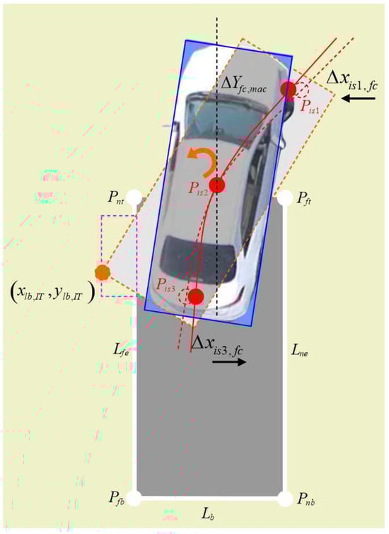 In Figure 3, the abscissas of center points and of the collected vehicle coverage areas within the interval are shifted to the left by and , achieving the correction of berthing inclination.
