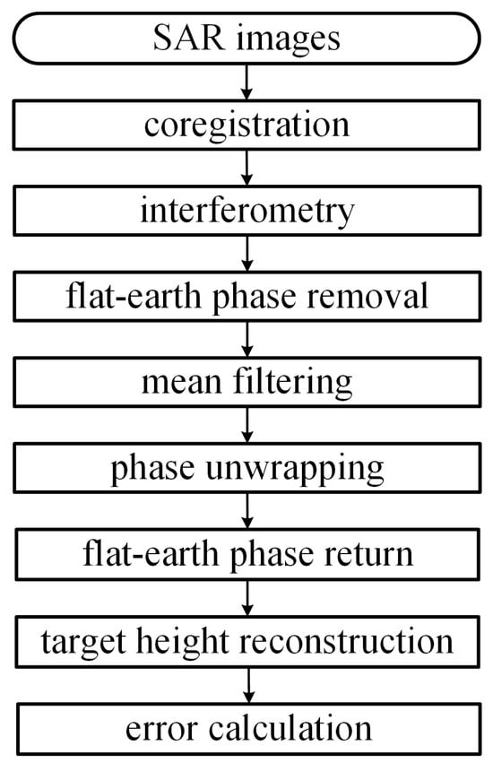 The InSAR technique has been used for measuring surface topography and altimetry profile [6], mapping three-dimensional building shape [7], and detecting building edge [8]. InSAR and TomoSAR imaging techniques demand precise coregistration between master image and slave images [9,10]. In [9], a two-step, scale-invariant feature transform (SIFT) registration method was proposed. In [11], an outlier-detecting total least-squares (OD-TLS) algorithm was proposed to enhance the precision and robustness of 3D point-set registration. In [12], a sinc interpolation method was used to implement subpixel-to-subpixel match.