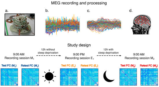 Another poorly investigated aspect concerns the stability of the fingerprint in relation to stress conditions [4]. Among the possible stress conditions, sleep deprivation represents an interesting case study since it has been shown to alter the brain network [10,11] in a temporary and non-pathological fashion, allowing one to observe possible individual variations. Even though the underlying neurophysiological mechanisms are poorly understood, several studies have investigated dynamic changes in brain connectivity, including electroencephalography (EEG) and functional magnetic resonance imaging (fMRI) approaches [12,13,14], which underline severe alterations in the connectivity of several networks, including dorsal attention, default mode, and hippocampal networks.