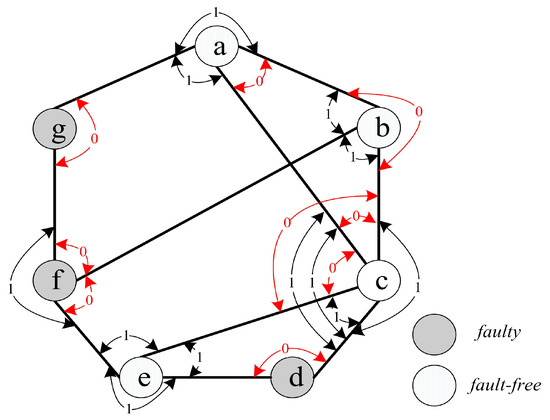 Require: Conditions 1–3. Ensure: , where H is the set of nodes that are identified as fault-free and is the set of nodes that are isolated. Step 1. , ; Step 2. Use a depth-first traversal algorithm to derive all the 0-test units under the comparison model; Step 3. Obtain the tester of each 0-test units and merge 0-test units to construct , and set ; Step 4. Compute for , by merging testers in ; Step 5. For each 0-test subgraph , if , then ; Step 6. ; Step 7. If , then ; else, ; Step 8. Return . |