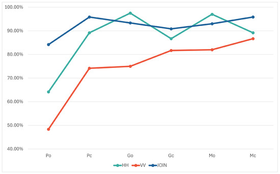 Comparison of the average accuracy per class of HH, VV, and JOIN models.