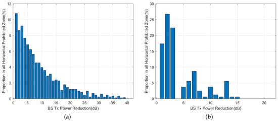 Tx power control in horizontal prohibited zone. (a) Omni, 2000 ft. (b) 16 × 16 Beamforming, 2000 ft, , \.