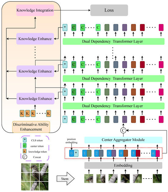 Specifically, we designed serial-connected knowledge enhancement learning to connect with each layer in the backbone network and augment the cls token output from each layer with discriminative knowledge. The model suppresses high-confidence class representations of knowledge tokens to guarantee the richness of fine-grained feature extraction for cls tokens and transfer and fuse the knowledge representation of the cls tokens. In single knowledge enhancement learning, we take the knowledge token