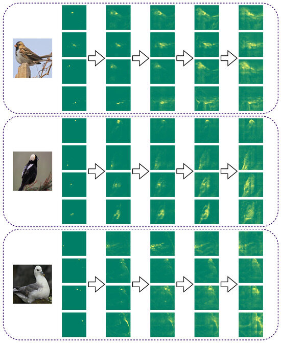 Figure 7. The discriminative accuracy of the model depends on the sensitivity of the fine-grained feature extraction strategy to the discriminatively relevant refinement information in the feature space. Based on our dual-attention–dependent high-fidelity feature representation, our proposed discriminative ability enhancement module implements guidance for the tendency change in the fine-grained feature extraction strategy in the backbone network by taking advantage of the knowledge-based modeling of classification recognition cues.