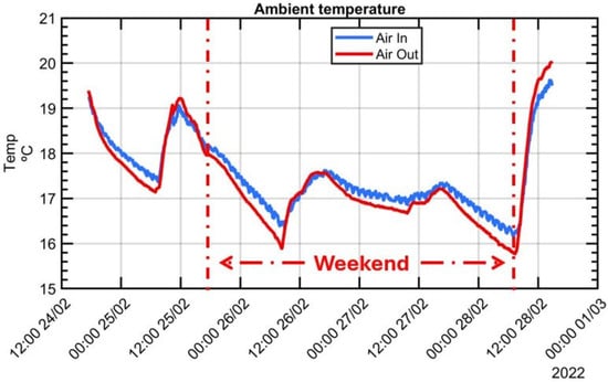 Ambient temperature variation during experimental tests performed between 24 February 2022 and 28 February 2022.