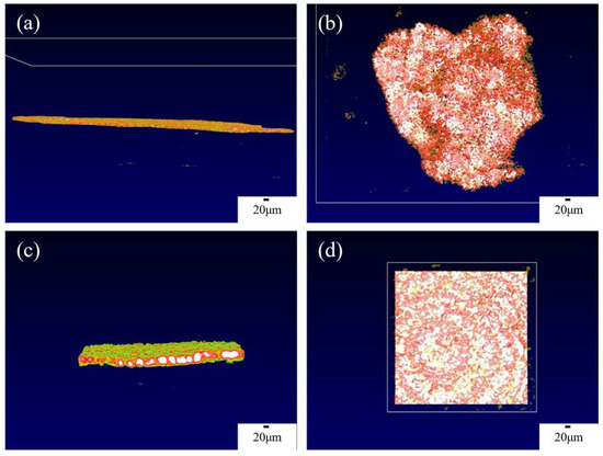OCT images of the internal interface of solid-state batteries from different angles. (a) Overall side view of the interface, (b) overall top view of the interface, (c) 200 × 200 μm side view, (d) 200 × 200 μm top view.