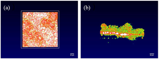 OCT image of the dendrite structure of the solid-state battery. (a) Top view of the interface, (b) side view of the interface.