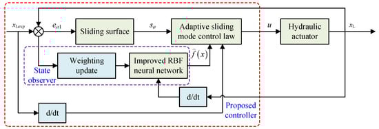 To cope with the nonlinear motion characteristics of the DTAAS, the regulator often cooperates with dynamic operating conditions to execute the control output. Displacement sensors and electrohydraulic proportional directional valves are available to obtain the real-time feedback signal and output the expected operating trajectory, and the designed controller used for calculation is fast running. Finally, the proposed position-tracking control scheme with the proposed method is shown in Figure 4. The proposed scheme improves the control accuracy and robustness of the DTAAS. Moreover, the sliding mode chattering phenomenon is also effectively suppressed.