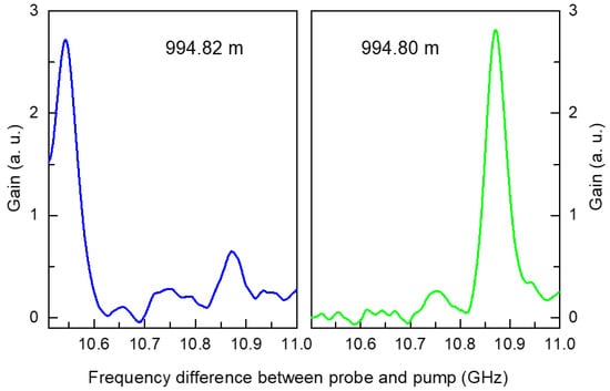 Brillouin frequency spectra measured at 994.80 m (right) and 994.82 m (left).