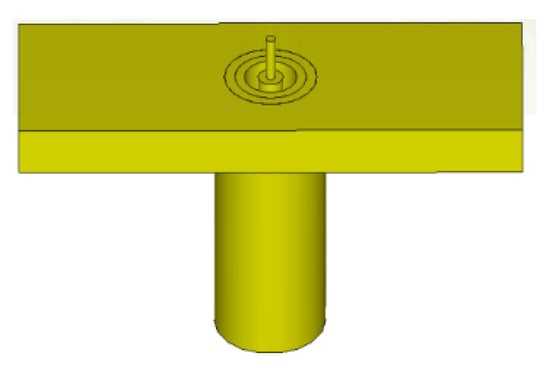 A via hole is drilled through the phase reference point (coordinate origin) of the prototype hologram, through which the inner conducting pin of a 2.92 mm panel socket jack coaxial probe connector passes and protrudes out perpendicularly from the plate, as schematized by Figure 22, serving as a monopole source which radiates the reference cylindrical waves.