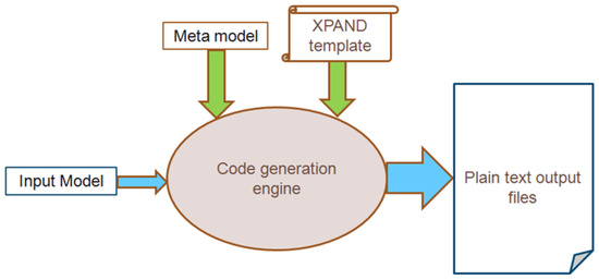 In our case (Figure 3), the input model reflects the design at a very high level of abstraction, and the meta-model (the extended ArchiMate meta-model) represents the abstract syntax [26,44]. Our automated code generation approach connects the simulation scripts and the design model directly [45]. As a result, it minimizes implementation errors and shortens the implementation time for complicated simulation programs.