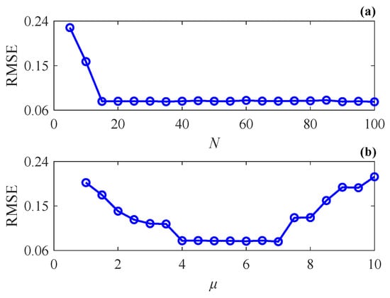 To determine the value of and , the root-mean-square error (RMSE) is adopted to quantify the effects of the two parameters on signal reconstruction performances. The RMSE is formulated as: