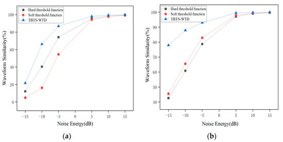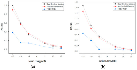 - To verify the denoising characteristics of the new threshold function, comparative experiments are carried out using a controlled variable approach. The experiments maintain a constant threshold, wavelet basis functions, and decomposition levels while only changing the threshold function. Denoising preprocessing is applied to two types of artificially noised simulated signals and experimental signals. A quantitative analysis is performed using three evaluation metrics: the Normalized Cross-Correlation (NCC), Root Mean Square Error (RMSE), and signal-to-noise ratio (SNR). The feasibility and advantages of the proposed threshold function are validated with the experiments.