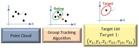 | Gating (width, depth, height, velocity) | Defining the maximal volume and velocity of an object being tracked and is used to associate the points with existing tracks |