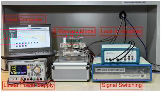 A series of practical verification experiments were implemented in the eight-coil EMT system developed as shown in Figure 11. Lock-In Amplifier is a technology for measuring the amplitude and phase of periodic signals. It obtains the signal of frequency by comparing the signal with the reference signal.