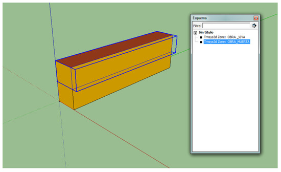 The patrol geometry was done with the Trimble SketchUp modeling software version 2022.0 (Figure 2). Regarding the simulation, a single thermal zone was defined. There were no considerable differences in the results between dividing the ship into several zones or considering it as a single zone. The patrol thermal model was created using the TRNSYS software (v17) [14] based on known patrol envelope characteristics (Table 1). EnergyPlus (v8.0) was used to create the weather-.epw format compatible with TRNSYS files from the data provided by the MeteoGalicia agency. The temporal resolution of data collected from both the established station and MeteoGalicia was set at one-hour intervals, aligning with the simulation’s time step. Standard meteorological datasets spanning a one-year period were produced, comprising 8760 individual records.
