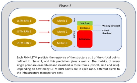 The phases proposed here culminate with the operation where, based on the predictions obtained from the ensemble of LSTM-type RNNs, decisions are made regarding the maintenance and operation of the infrastructure.