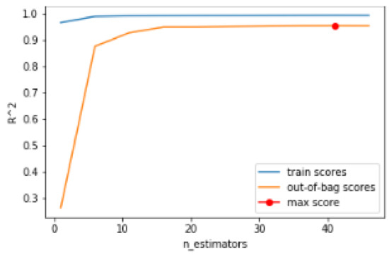 Regarding the number of trees, 42 is taken as a hyperparameter because it is the average obtained after the simulation of the available data set. The number of trees assessment is represented in Figure 12.