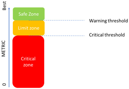 After training the networks, a voting system is established that monitors the state of the structure based on the errors of each LSTM RNNs. This error places each prediction in a zone: the safe zone, the limit zone, or the critical zone. This is represented by Figure 6.