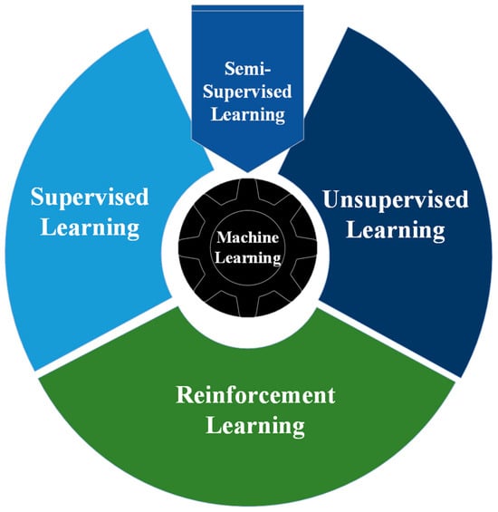 Reinforcement learning differs from other categories of machine learning, namely supervised, unsupervised, and semi-supervised learning. RL learns through a process of trial and error that aims to maximize the cumulative reward of an action in any given environment. Traditional machine learning branches can be specified as shown in Figure 1. Supervised learning: This method involves learning from a training dataset labeled with desired results [8,9]. It is the most common learning approach in the machine learning field. The objective is to generalize the model so that it can perform effectively on data not present in the training set. Unsupervised learning: This method operates with unlabeled data, unlike supervised learning. It is more challenging as it lacks actual labels for comparison. The model attempts to learn the characteristics of the data and then clusters these data samples based on their similarities [10]. Semi-supervised learning: This type is a combination of supervised and unsupervised learning. The dataset is partially labeled, while the rest is unlabeled data [11]. The goal is to cluster a large amount of the unlabeled data using unsupervised learning techniques and then label them based on supervised techniques.