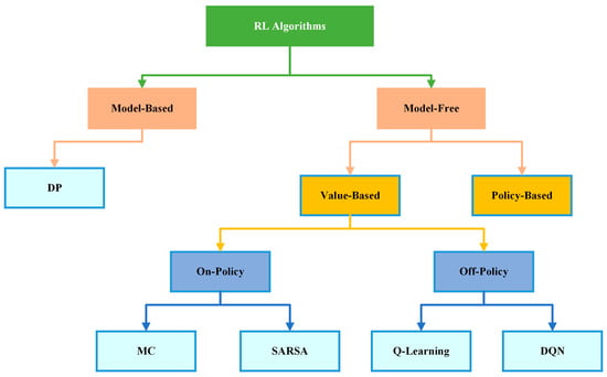This subsection introduces the differences between reinforcement learning models. Therefore, to delve deeper into reinforcement learning algorithms and their applications, it is important to understand the two categories they are divided into: model-free and model-based reinforcement learning algorithms. Additionally, there are two primary approaches in reinforcement learning for problem-solving, which are value-based and policy-based, both of which can be categorized under model-free methods [43]. Lastly, reinforcement learning algorithms can be categorized into two main types: on-policy and off-policy learning [6].